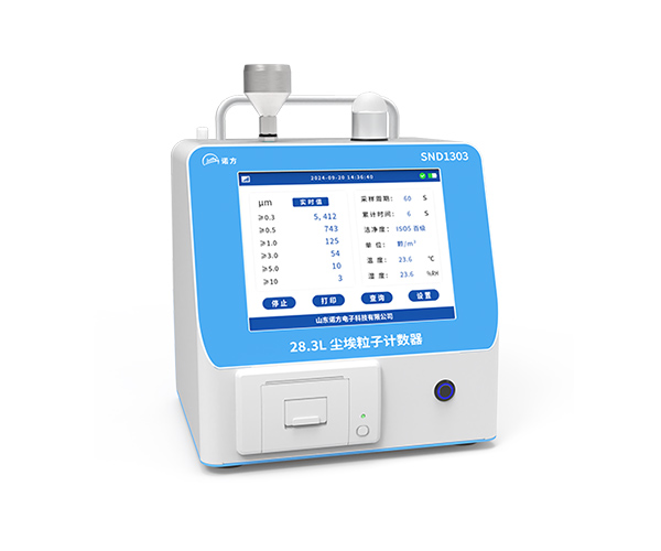 The SND1303 28.3L Portable dust particle counter is a multi-channel dust particle counter based on the principle of single particle laser scattering. It can accurately detect 6-channel particles including 0.3μm, 0.5μm, 1μm, 3μm, 5μm, and 10μm, which are commonly used in the industry. It supports multiple wired and wireless communication interfaces and transmits data in real time to various intelligent terminals, reducing human involvement. It is suitable for various occasions with cleanliness monitoring requirements, achieving continuous real-time monitoring 24/7, reducing risks and costs.